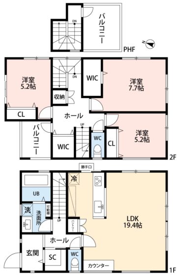 間取3LDK+屋上テラス+ウォークインクロゼットとシューズインクロゼットにファミリークロゼット付で並列車庫2台分♪